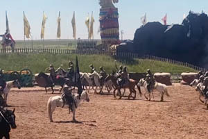 내몽골 자치구의 마상쇼는 광활한 초원을 배경으로 몽골 기마 전통과 전투 문화를 웅장하게 재현한 대형 야외 공연입니다.