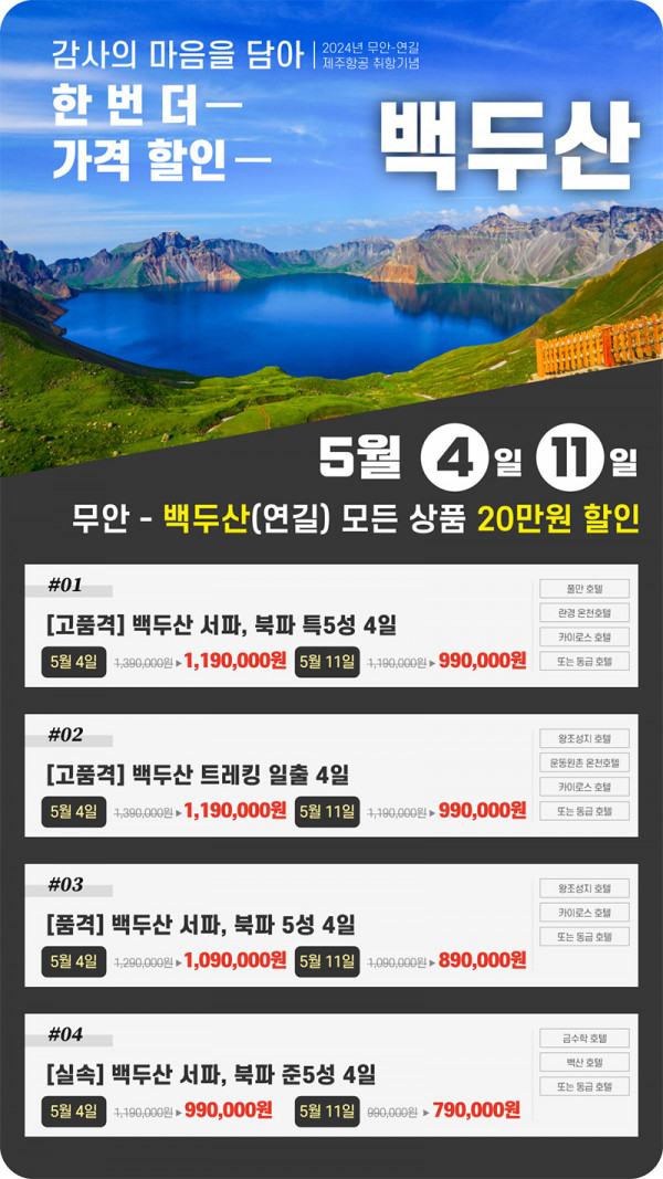 5월 백두산(연길) #품격 #고품격 선착순 할인