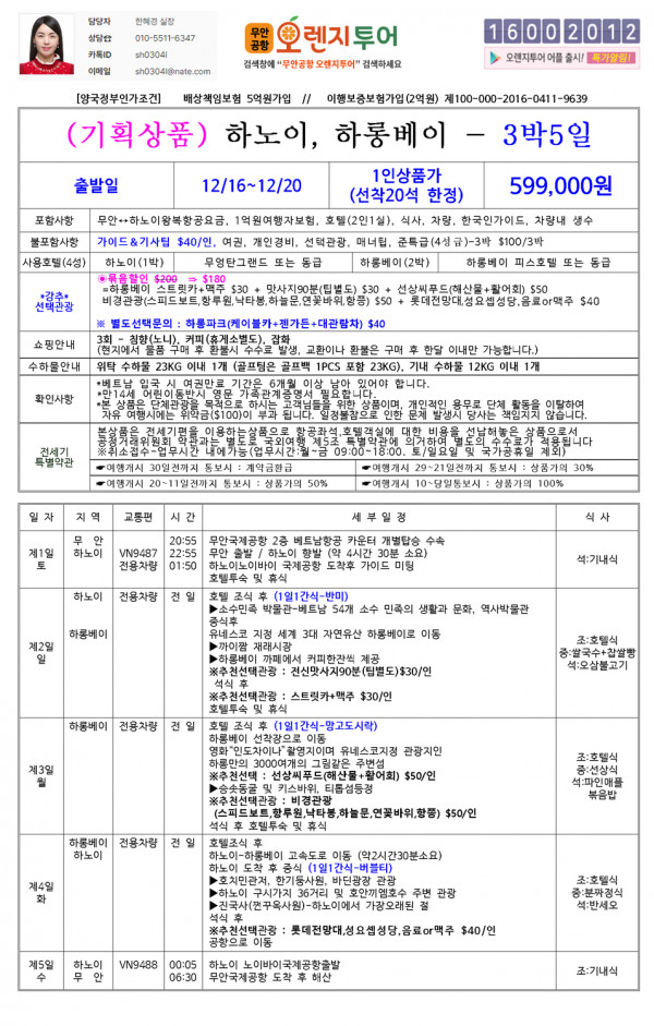 [하노이특가] 하노이,하롱베이 5일 599,000