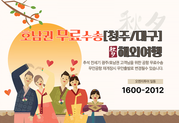 현재 무안공항 재개장이 불투명한 관계로 추석시즌 전세기 상품이 청주/대구 출발로