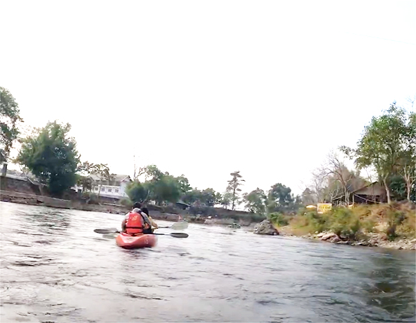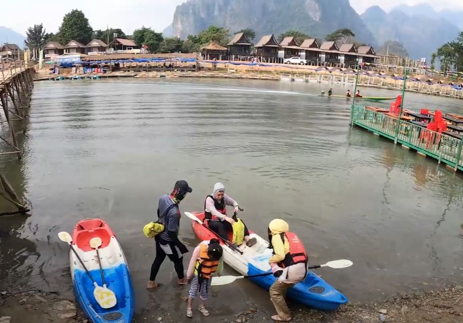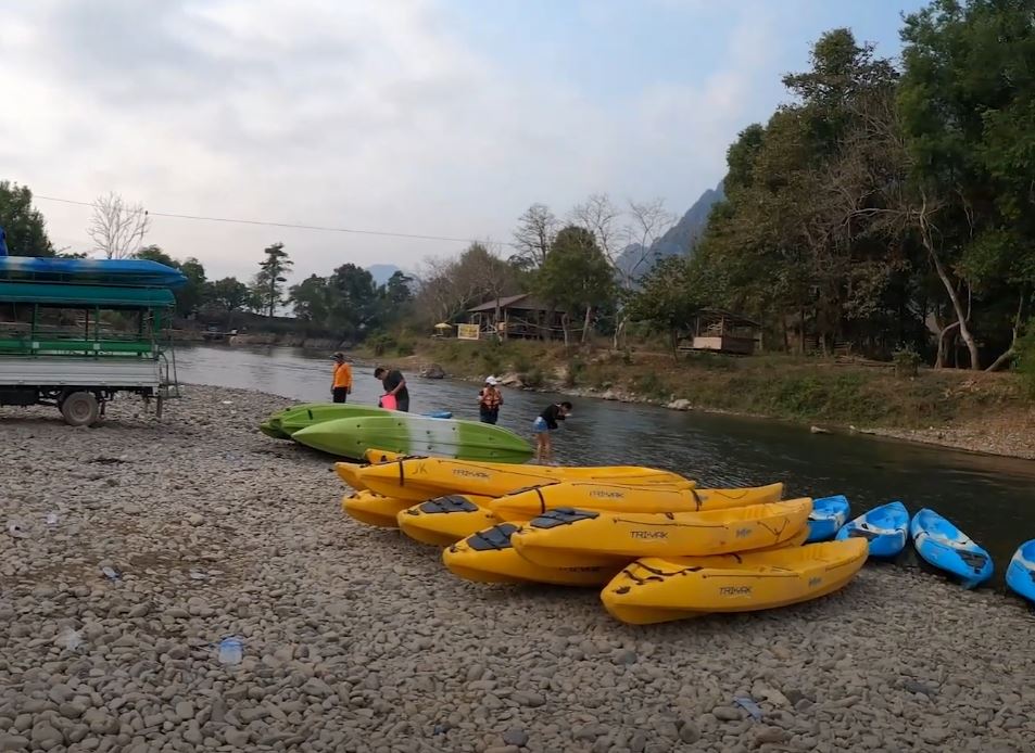 쏭강을 따라 카약을 타고 이동하며 방비엥 절경 감상