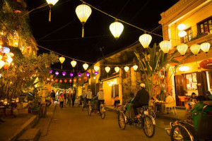 유네스코 지정 세계문화 유산인 호이안 구시가지의 전등거리 관광