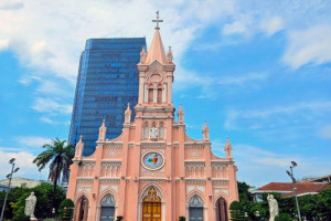 대성당은 고딕 양식의 분홍빛 가톨릭 성당으로, 뾰족한 종탑과 아기자기한 장식이 돋보이는 다낭의 대표 관광지다.