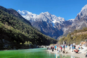 옥룡설산 계곡의 빙하수가 만들어낸 터키블루 빛 맑은 호수 람월곡&백수하
