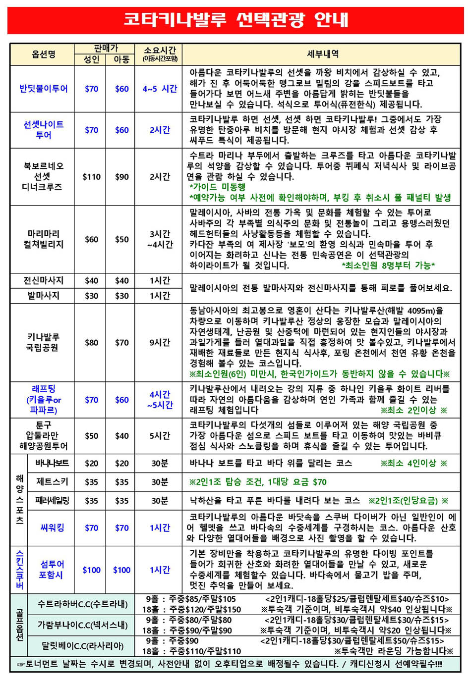 • 코타키나발루 선택관광 안내